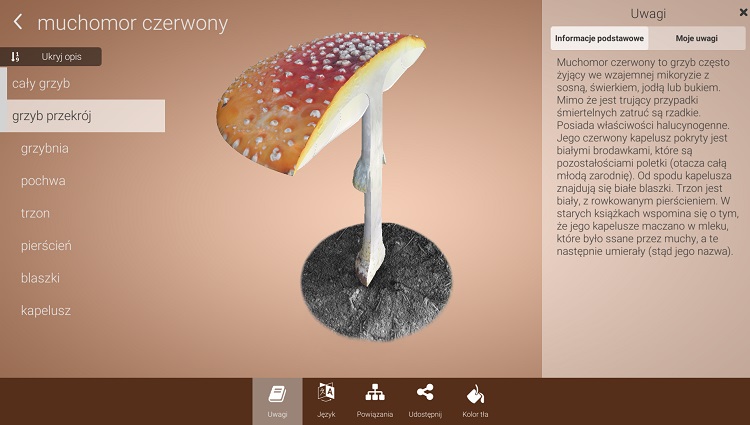 Wykorzystanie funkcji AR (rozszerzonej rzeczywistości) możliwość uwypuklenia dowolnej części modelu w celu bardziej kompleksowej prezentacji, Zoom i obrót 3D modeli w celu bardziej szczegółowego widoku, wbudowana funkcję ślepej mapy w celu przeanalizowania i przetestowania wiedzy uczniów, narzędzie do wyszukiwania zgodnie z nazwą i słowami kluczowymi, możliwość przełączania poszczególnych wersji językowych i wyświetlania kilku języków jednocześnie, funkcję robienia zdjęć w celu stworzenia nieograniczonej liczby obrazków do pomocy naukowych na własne potrzeby, możliwość wpisywania własnych uwag do modeli, kompatybilność z MS Office w celu zastosowania modeli w prezentacjach i dokumentach. Możliwość wykorzystywania zakupionej licencji na wszystkich szkolnych komputerach i tabletach z Windows10.