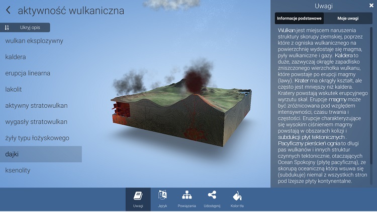 Wykorzystanie funkcji AR (rozszerzonej rzeczywistości) możliwość uwypuklenia dowolnej części modelu w celu bardziej kompleksowej prezentacji, Zoom i obrót 3D modeli w celu bardziej szczegółowego widoku, wbudowana funkcję ślepej mapy w celu przeanalizowania i przetestowania wiedzy uczniów, narzędzie do wyszukiwania zgodnie z nazwą i słowami kluczowymi, możliwość przełączania poszczególnych wersji językowych i wyświetlania kilku języków jednocześnie, funkcję robienia zdjęć w celu stworzenia nieograniczonej liczby obrazków do pomocy naukowych na własne potrzeby, możliwość wpisywania własnych uwag do modeli, kompatybilność z MS Office w celu zastosowania modeli w prezentacjach i dokumentach. Możliwość wykorzystywania zakupionej licencji na wszystkich szkolnych komputerach i tabletach z Windows10.
