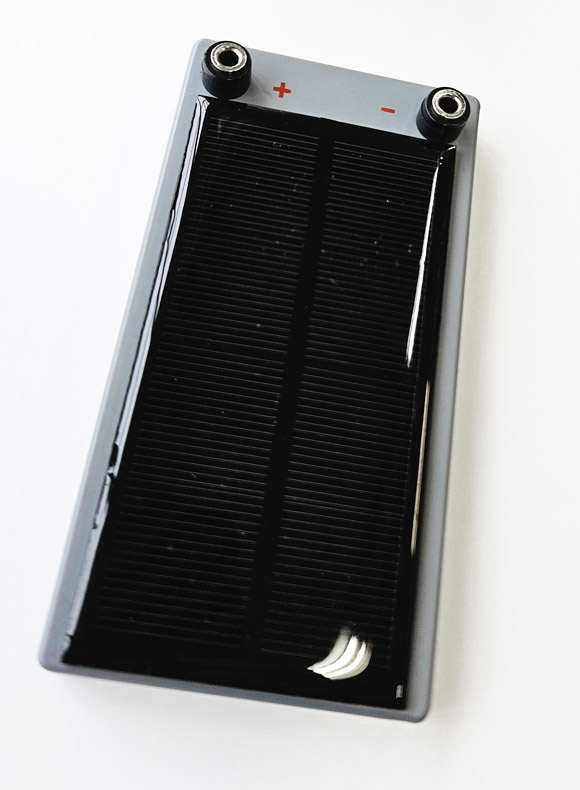 Model kolektora słonecznego o wydajności ok. 2V/300 mA. Przeznaczony do demonstracji lub ćwiczeń uczniowskich z zakresu konwersji energii światła ciepłego (słońce, lampy żarówkowe, halogeny) na energię elektryczną (prąd stały).