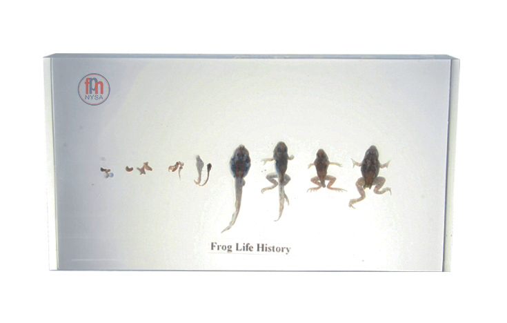 Stadia rozwoju żaby. Żaba - cykl rozwoju. Preparat makroskopowy zatopiony w pleksi prezentuje stadia rozwoju płaza na przykładzie żaby. Prezentuje przeobrażenie larwy (kijanki) w postać dorosłą. Pomoc dydaktyczna doskonale uzupełni wyposażenie pracowni biologicznej i przyrodniczej.