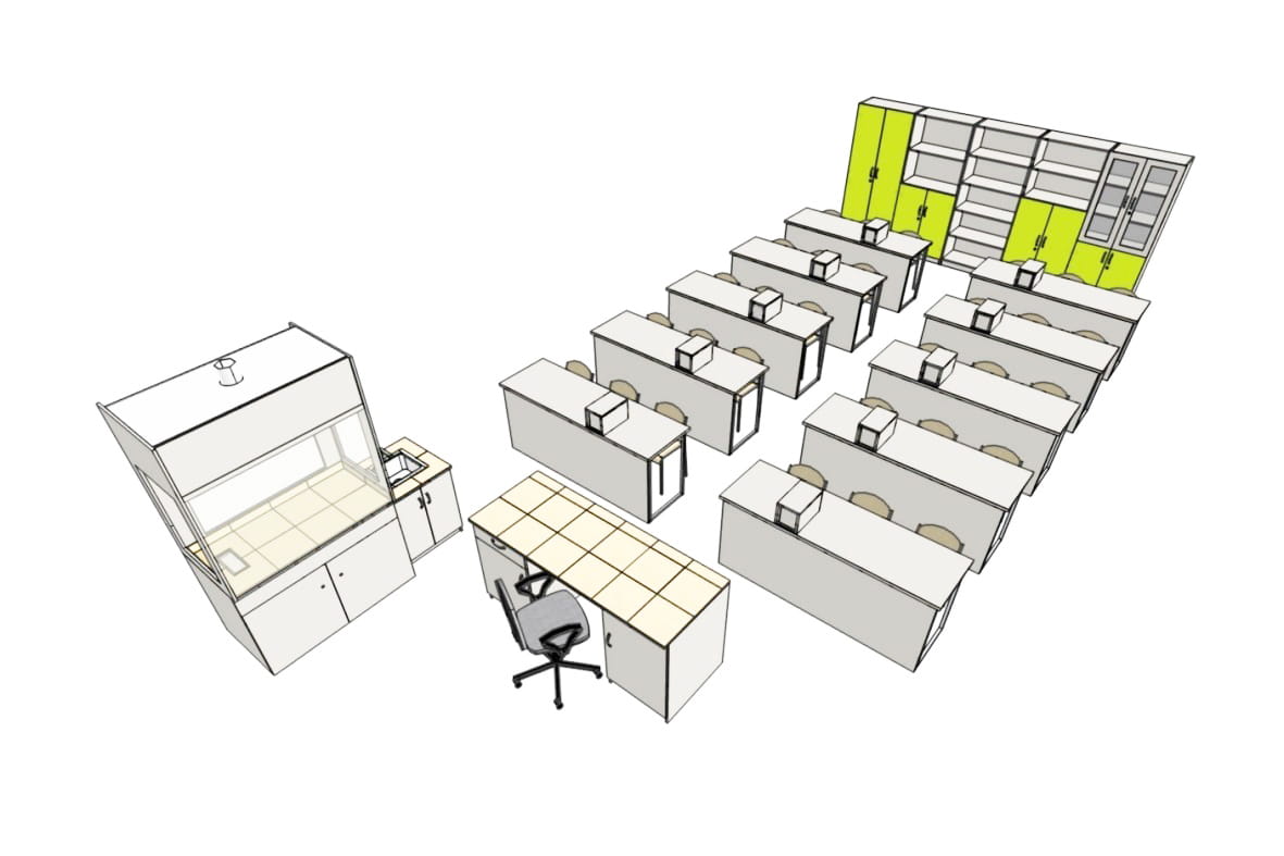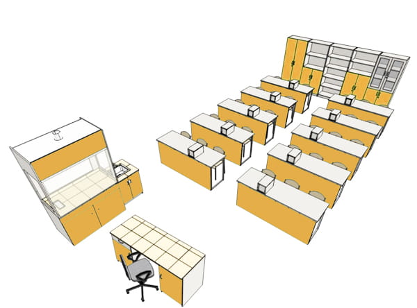 Pracownia fizyczno-chemiczna 30-stanowiskowa / nadstawki z zasilaczami /