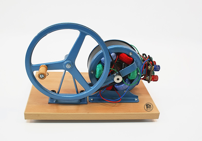 Model ułatwia wyjaśnienie zasady budowy generatora prądu trójfazowego oraz generację tego prądu. Za pomocą modelu można zapoznać się ze sposobami kojarzenia faz generatora, z jego właściwościami w stanie nieskojarzonym i skojarzonym w trójkąt i gwiazdę oraz demonstrować wirujące pole magnetyczne.