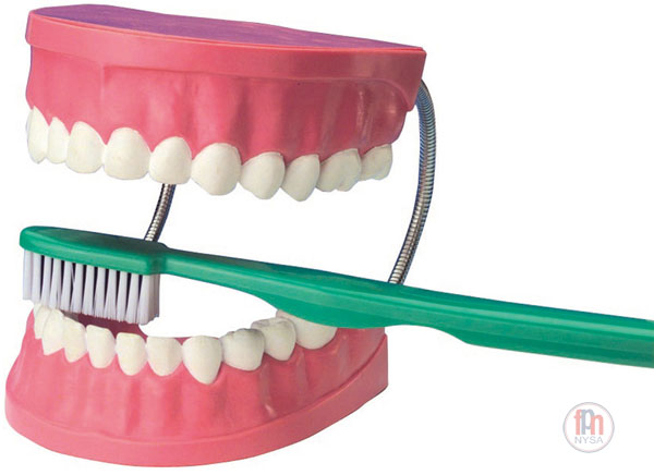 Model do nauki higieny jamy ustnej. Dwukrotnie powiększony model szczęki wraz z uzębieniem.