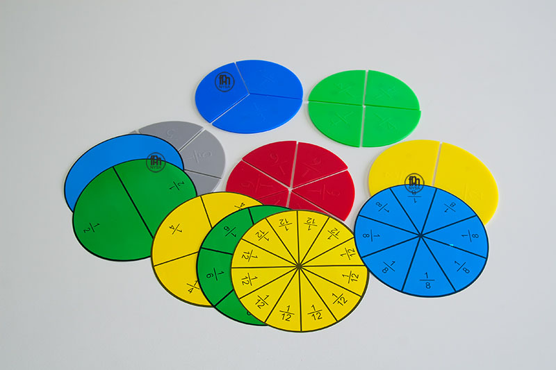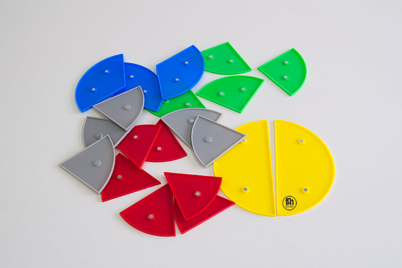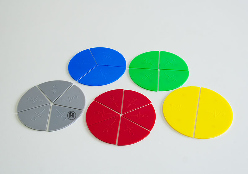 Pomoc dydaktyczna do nauczania matematyki w postaci kół ułamkowych. Zestaw zawiera 6 magnetycznych kół o średnicy ok 20cm. 5 kół podzielone na wycinki koła (1/2, 1/4, 1/4, 1/5, 1/6) oraz jedno całe koło. W zestawie również 6 papierowych kół: 5 podzielonych na części ułamkowe (1/2, 1/4 1/6, 1/8, 1/12) oraz 1 koło jako całość. Zestaw zapakowany w estetyczne plastikowe pudełko z przezroczystym wieczkiem.