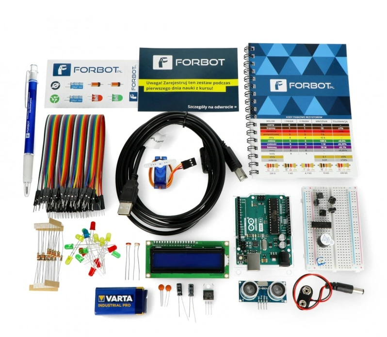 Zestaw FORBOT do kursu Arduino (m.in. z mikrokontrolerem, płytką stykową) + materiały edukacyjne