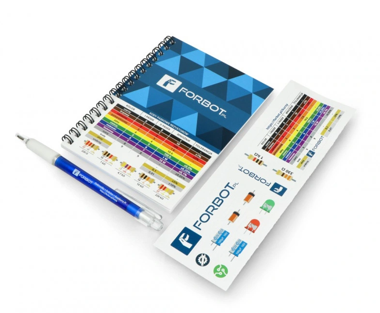 Kupując zestaw wspierasz serwis FORBOT! W ramach podziękowania otrzymasz gadżety Forbota, takie jak: długopis, naklejki i notes oraz pudełko do przechowywania elementów zestawu.