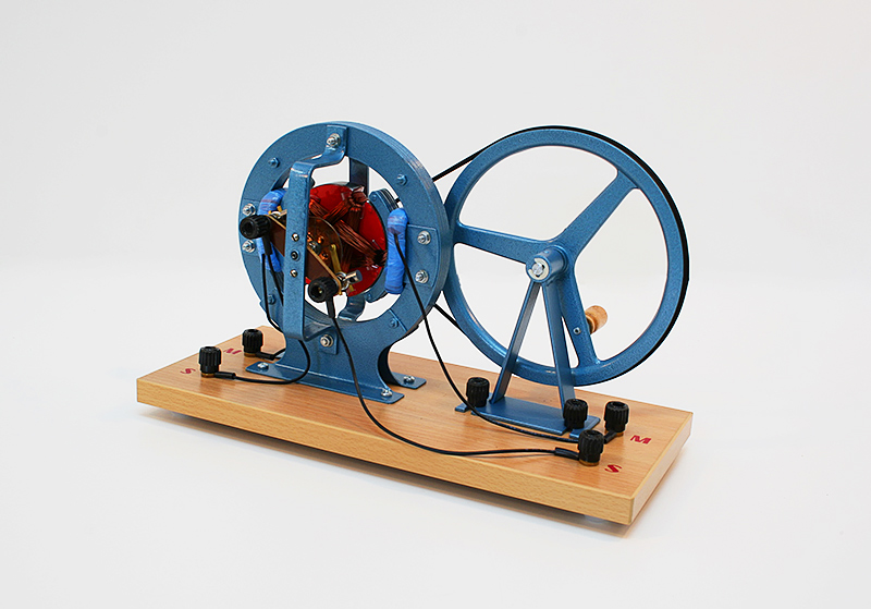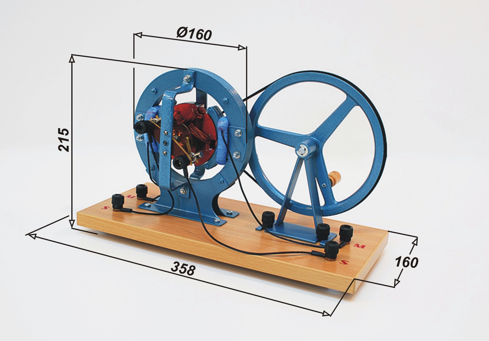 Model dydaktyczny służy do pokazywania budowy prądnicy i silnika na prąd stały i wyjaśnia zasadę ich działania. Pomoc dydaktyczna ma taką konstrukcję, że wszystkie jej części składowe są dobrze widoczne.