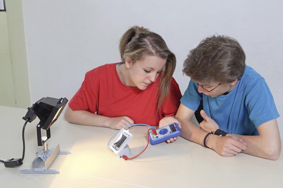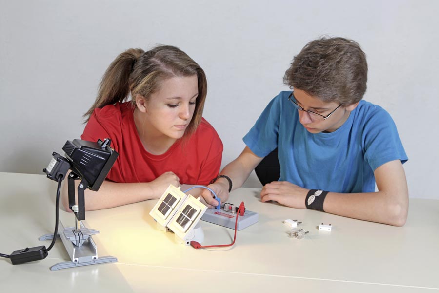 Wykonując doświadczenia uczniowie poznają ogniwa fotowoltaiczne, dokonują analizy wpływu połączeń ogniw oraz kierunku ustawienia paneli słonecznych na ilość generowanej energii.