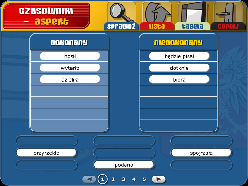 Zadania i ćwiczenia interaktywne podzielone są na następujące działy tematyczne: