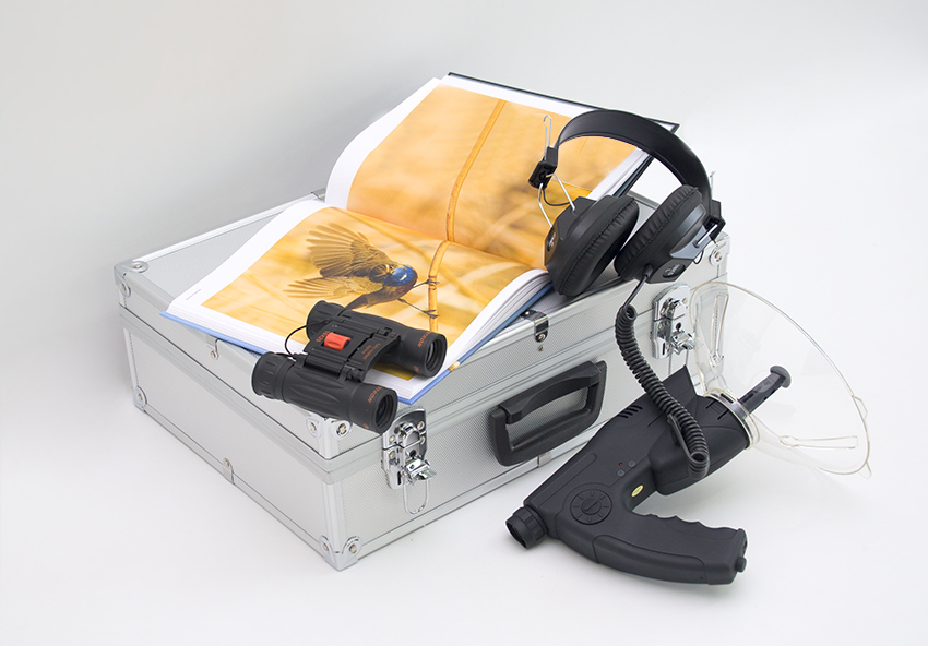 Zestaw zawiera 2 lornetki (w tym jedna wbudowana w mikrofon kierunkowy) przystosowane do obserwacji ptaków w warunkach dziennych, mikrofon kierunkowy z rejestratorem dźwięku (pamięć wewnętrzna umożliwia nagranie pojedynczej kilkunastosekundowej sekwencji), który przy współpracy z laptopem może posłużyć do zebrania bazy nagrań, które następnie można porównać z nagranymi profesjonalnie i zebranymi na płycie odgłosami ptaków, które wraz z bogato ilustrowanym albumem również wchodzą w skład zestawu.
