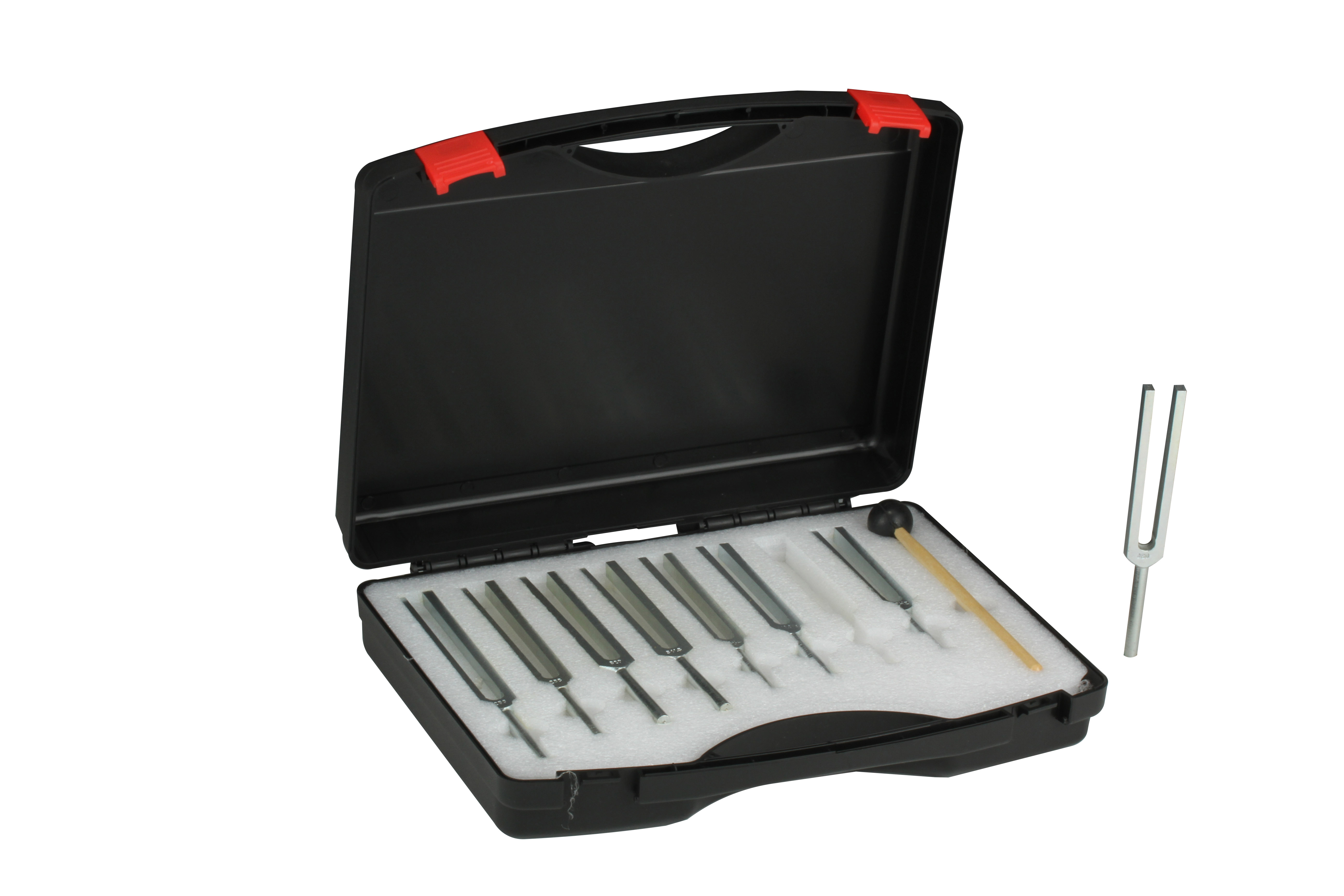 Zestaw zawiera osiem kamertonów w skali C - częstotliwości 256, 288, 320, 341.3, 384, 426.6, 480 i 512 Hz. Dostarczane w małej walizce z tworzywa sztucznego.