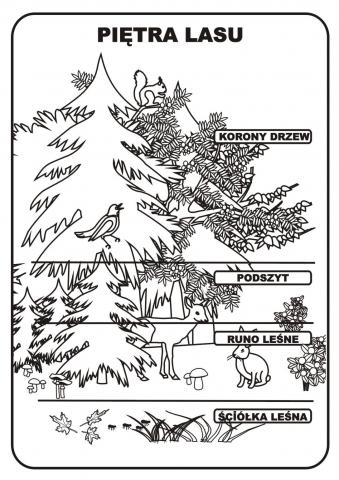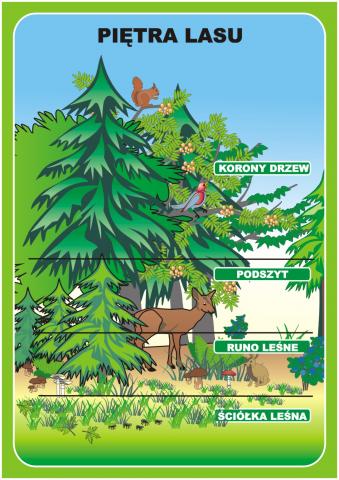 PLANSZA I - Piętra lasu – schemat lasu z podstawowym podziałem