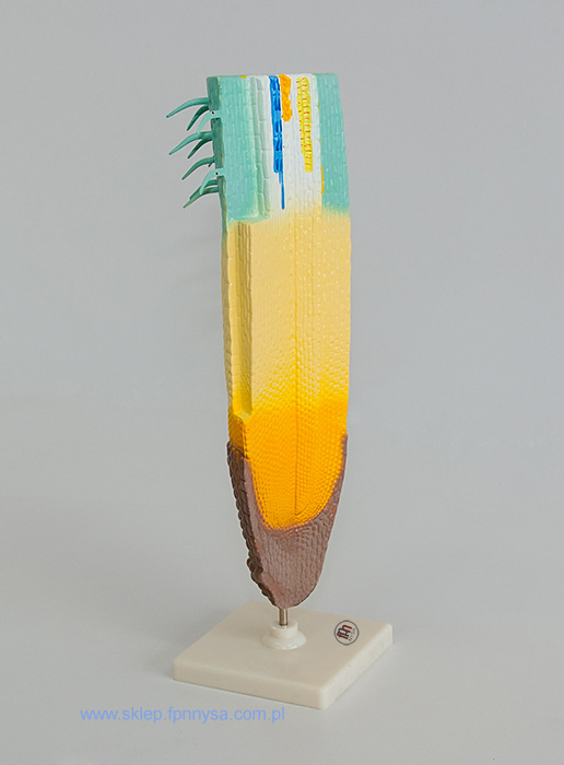 Model końcówki korzenia wraz z fragmentem przekroju podłużnego.