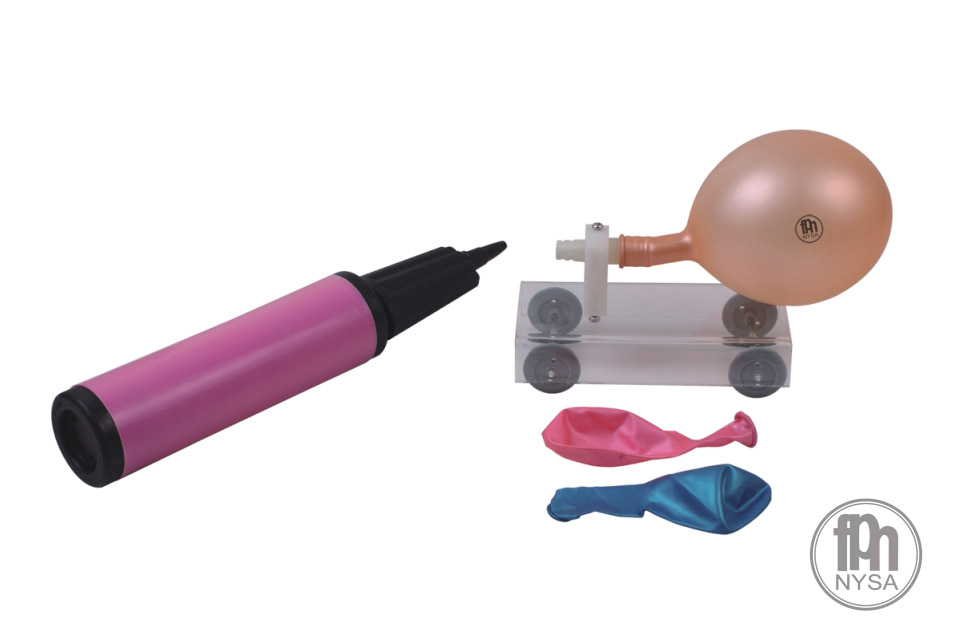 Model pojazdu z napędem odrzutowym. W zestawie pompka do balonów oraz 3 baloniki.