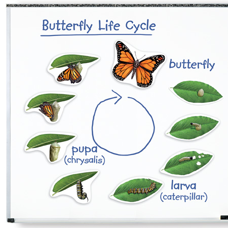 Pomoc dydaktyczna składająca się z 9 dużych, magnetycznych ilustracji prezentujących cykl rozwojowy motyla. Idealna pomoc do pracowni przyrodniczej.