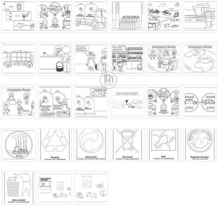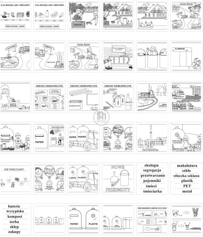 Plansze prezentują sposoby segregacji odpadów komunalnych, które powinny być prowadzone w każdym gospodarstwie domowym. W czytelny i jasny sposób pokazują celowość i korzyści wynikające z segregacji śmieci. Historyjki obrazkowe pozwalają zrozumieć zasady recyklingu i jego rolę dla ochrony środowiska.