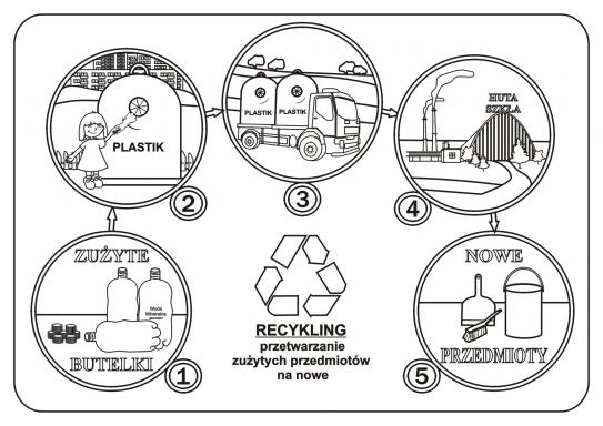 PLANSZA XII- „Recykling plastiku” - jak przetwarzamy zużyte opakowania plastikowe