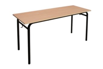 Konstrukcja stała. Nogi z rury płaksoowalnej 38x20 mm, zaślepione stopkami z tworzywa sztucznego. Blat - płyta wiórowa laminowana o grubości 18 mm, obrzeża zabezpieczone doklejką PCV. Opcjonalnie – koszyk pod blatem.