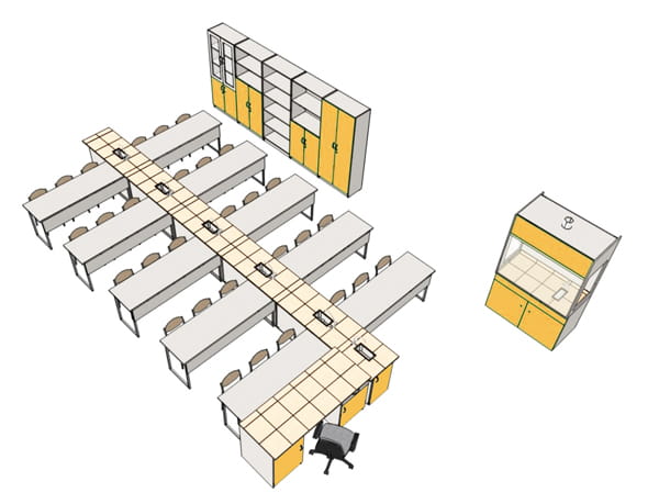 Pracownia chemiczna 30-stanowiskowa /kanał z mediami/