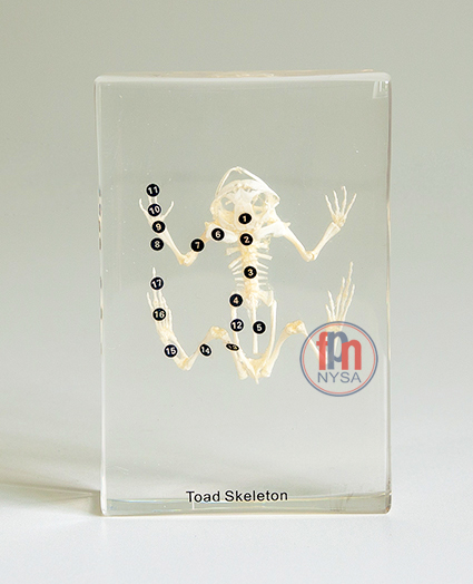 Pomoc dydaktyczna stanowi idealne uzupełnienie wyposażenia pracowni biologicznej i pracowni przyrodniczej. Pomoce edukacyjnego tego typu, tu: szkielet płaza, w idealny sposób prezentują charakterystyczne cechy budowy szkieletowej. W tym przypadku widzimy: ażurową konstrukcję czaszki, występowanie kłykci potylicznych i zredukowanych żeber. Najważniejsze kości zostały oznaczone.
