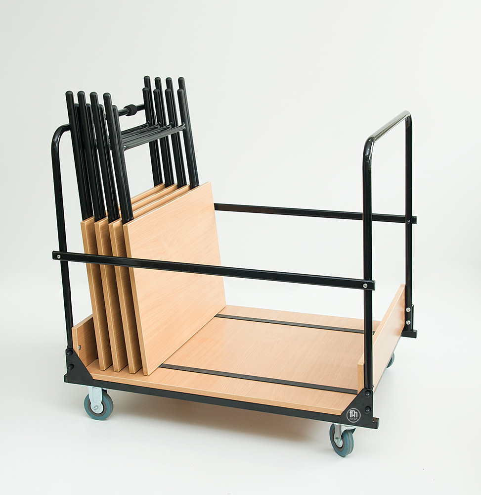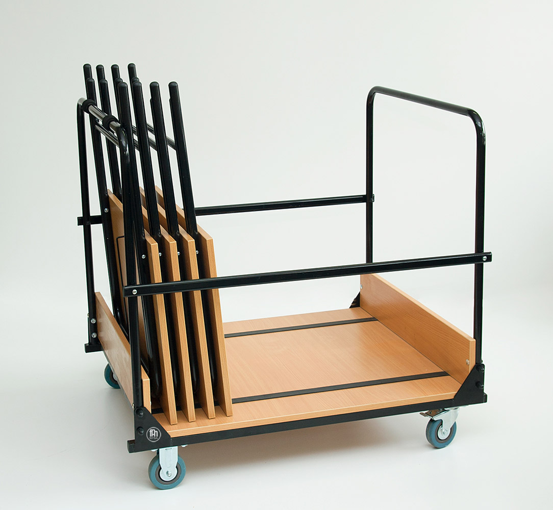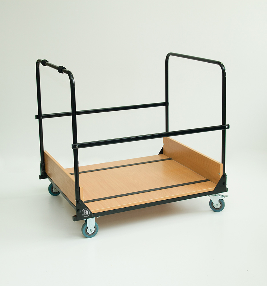 Wózek do transportu stołów egzaminacyjnych - stelażowy wózek, zaopatrzony w cztery solidne koła o śred. 100 mm (dwa stałe i dwa obrotowe - w tym jedno z hamulcem), idealny do swobodnego przewożenia stołów egzaminacyjnych naszej produkcji . Niezbędny zwłaszcza tam, gdzie wymagany jest szybki transport stolików między salami. Dodatkowo posiada możliwość złożenia go do transportu lub w celu przechowania przy dłuższym okresie nieużytkowania.