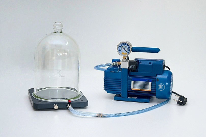 Zestaw składa się z klosza próżniowego (03-246-1), podstawy klosza (03-246-2), węża połączeniowego z opaskami zaciskowymi oraz elektrycznej pompy próżniowej (03-247) z wbudowanym wakuometrem.